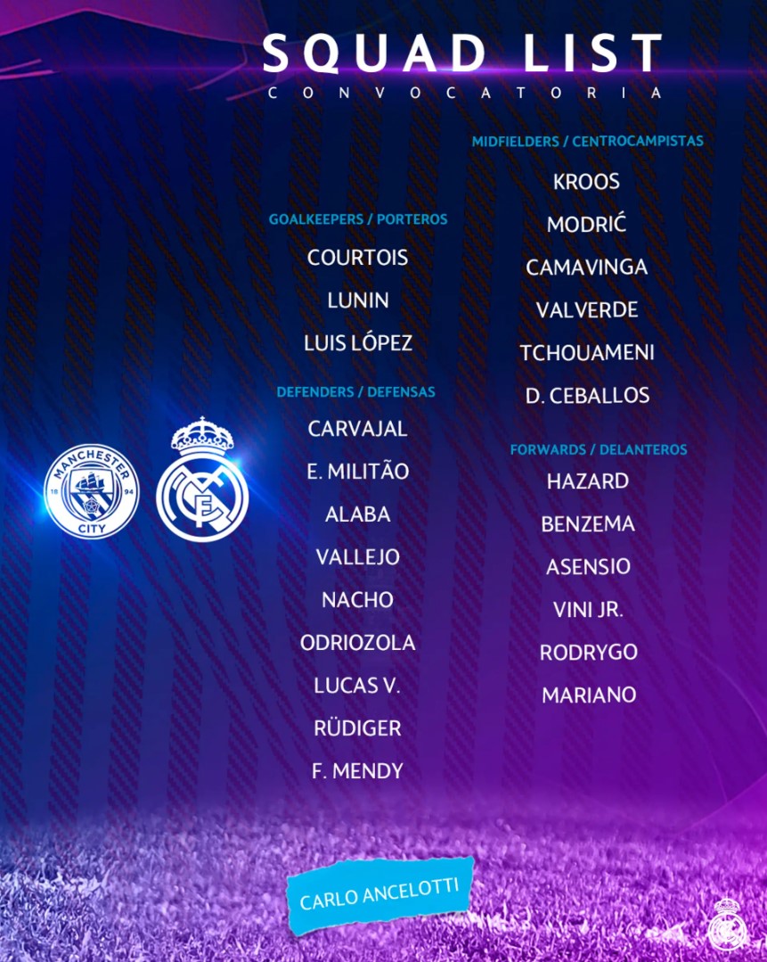 "რეალის" განაცხადი "სიტისთან" მატჩისთვის ცნობილია