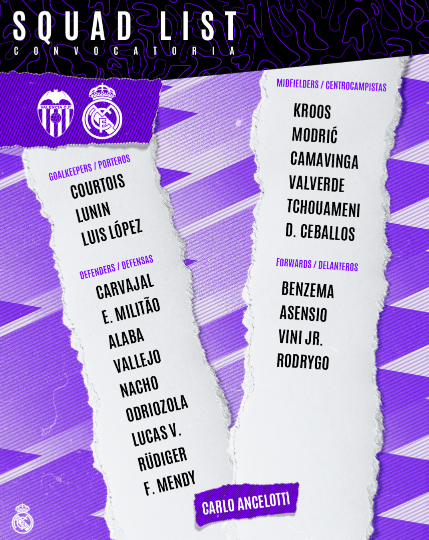"რეალის" განაცხადი "ვალენსიასთან" მატჩისთვის ცნობილია