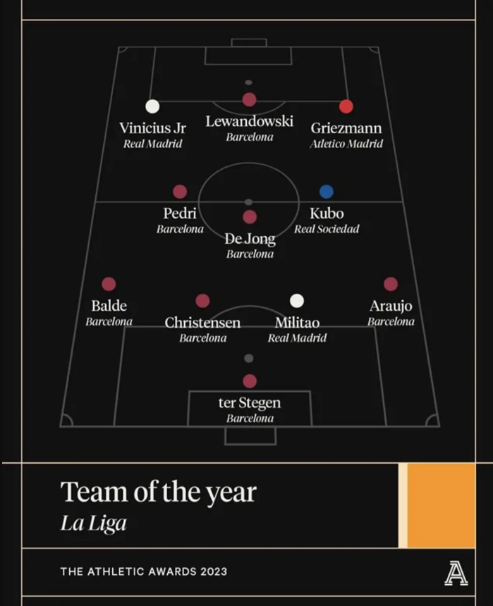ცნობილმა გამოცემა "The Athletic"-მა 2022/23 წლების ლა ლიგის სეზონის საუკეთესო გუნდი დაასახელა.