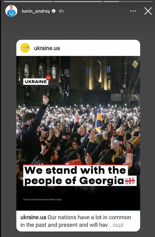 მადრიდის "რეალის" ფეხბურთელი ანდრეი ლუნინი საქართველოში მიმდინარე პროცესებს ეხმაურება.