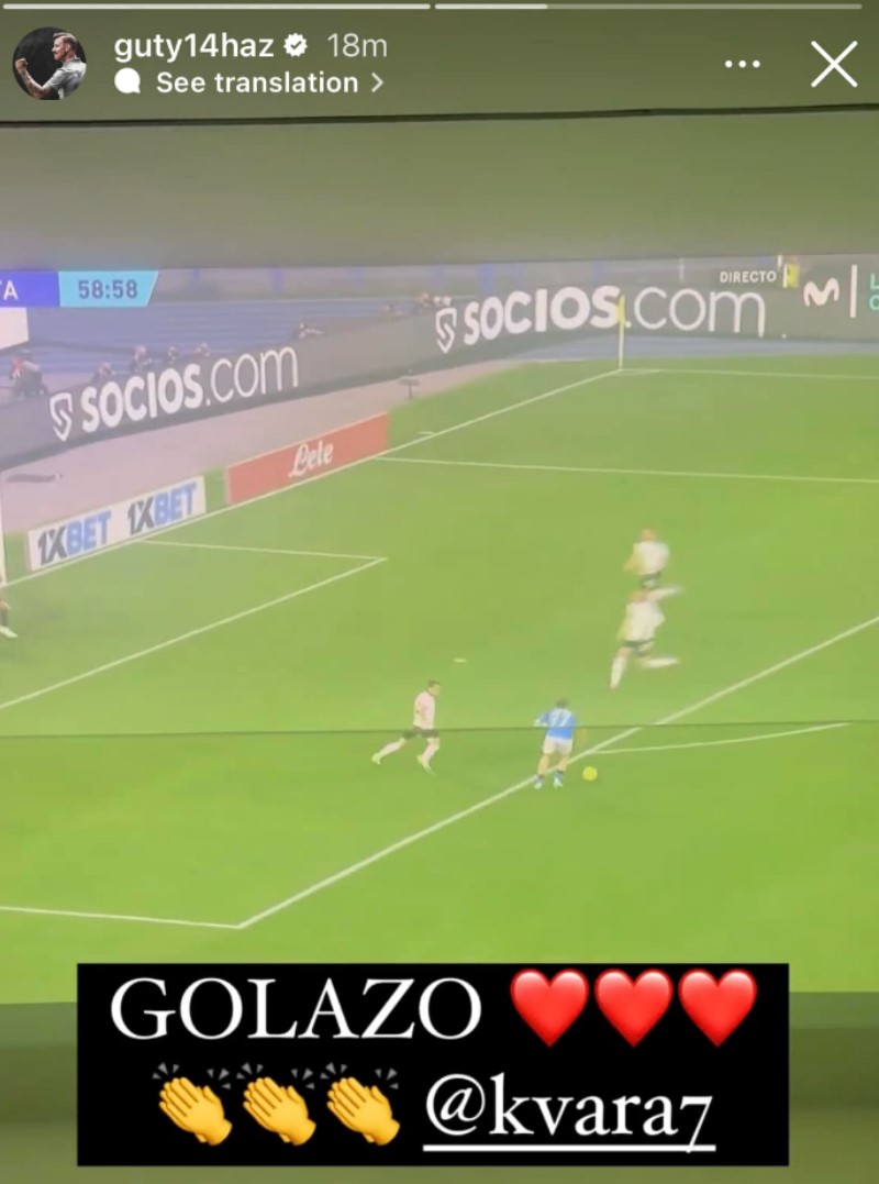 ქართველის გოლს მისი კუმირი და მადრიდის "რეალის" ლეგენდა გუტიც გამოეხმაურა, რომელმაც სოციალურ ქსელში შემდეგი პოსტი განათავსა.
