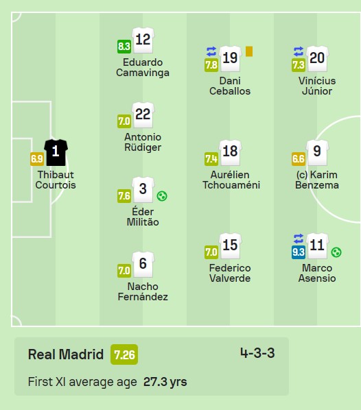 გთავაზობთ, "რეალის" სხვა მოთამაშეების შეფასებებს SofaScore-ის მიხედვით.