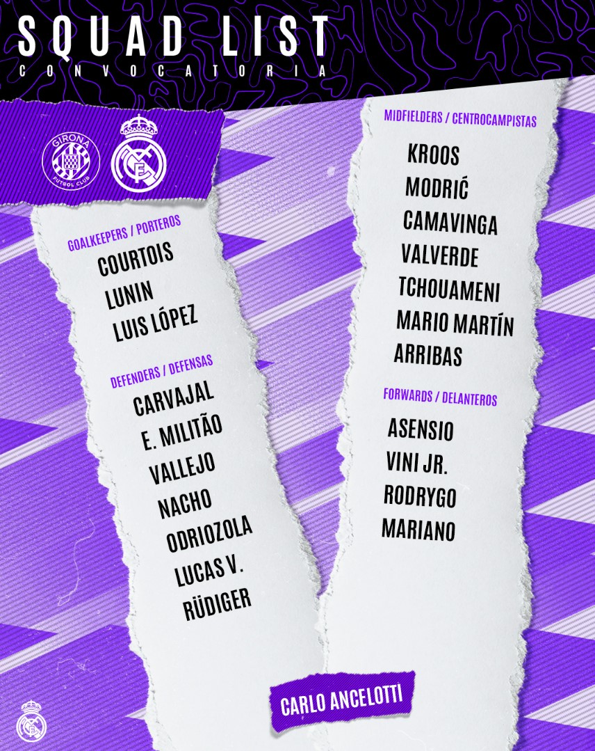 "რეალის" განაცხადი ამ მატჩისთვის კი ასე გამოიყურება: